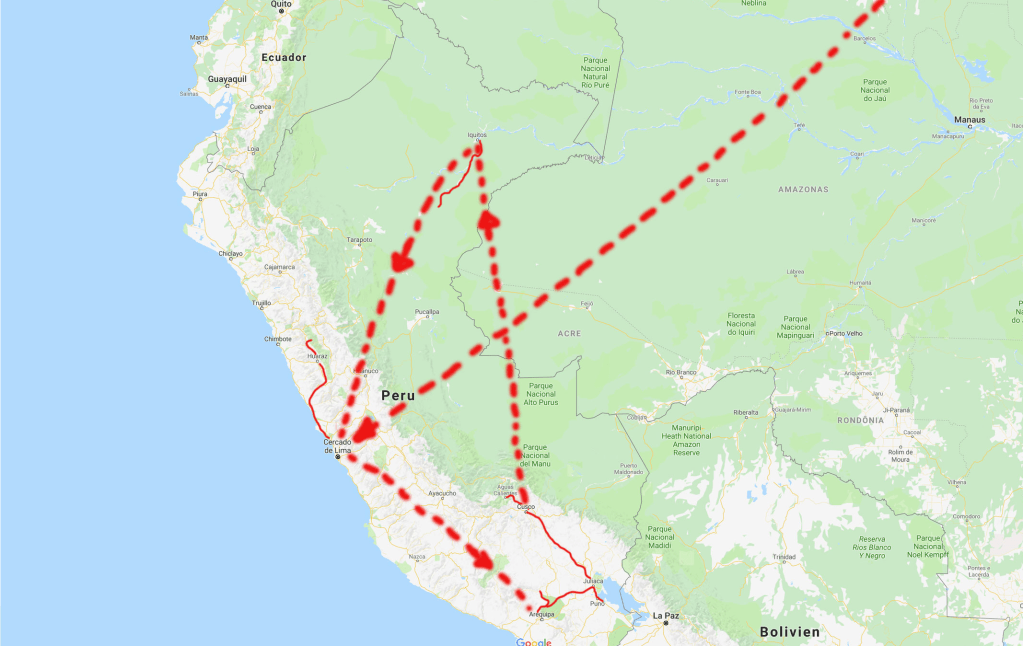 Das wird ein Abenteuer. Da bin ich mir sicher. Wir haben ja nun schon einiges auf eigene Faust gemacht und organisiert, aber Peru stellt einen immer wieder vor Herausforderungen in der Planung. Wenn man versucht die Zeit so effektiv wie möglich zu nutzen, stellt man immer wieder fest, dass man von diversen Sachen ausgebremst wird. So kommt man zum Beispiel aus Iquitos im Amazonas nicht direkt nach Huaraz ins Gebirge. Man muss über Lima fliegen. Dort kommt man aber zu einer Zeit an, wo man am selben Tag nicht mehr nach Huaraz fliegen kann usw. usw.
