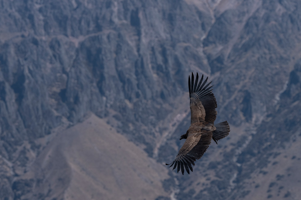 Davon abgesehen ist es im Colca Canyon fantastisch. Nach dem Frühstück direkt am Rande des Canyons haben wir einige Zeit mit der Beobachtung eines jungen Condors verbracht, der sich Luftlinie 50 Meter von uns auf einen Stein setzte und geduldig ausharrte.