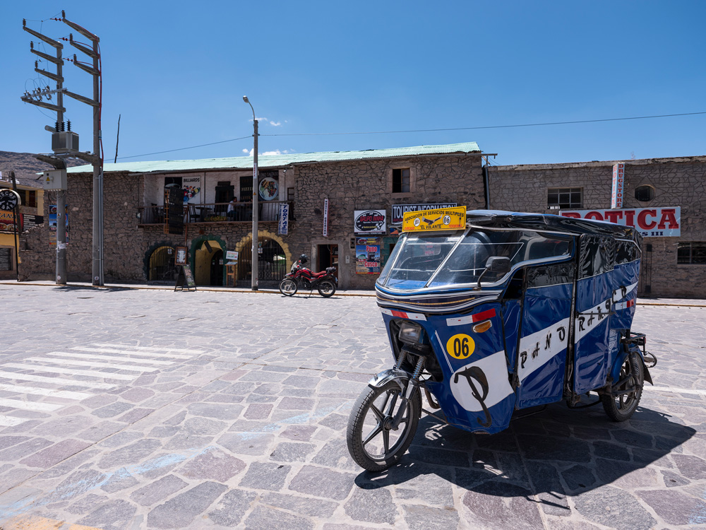 Eigentlich wollten wir den Canyon in die noch unbekannte Richtung weiter erkunden. Entschlossen uns dann aber, wegen fehlender Tankmöglichkeiten wieder nach Chivay (ca. 50 km) zurückzufahren und dort erst einmal vollzutanken. Die Orte sind eigentlich alle gleich aufgebaut. Die eine gute Straße geht zur Kirche mit Marktplatz. Die anderen sind meistens Staubpisten, wo man nie weiß, ob man wieder rauskommt, wenn man einmal hineingefahren ist. Wir bekamen jedenfalls Benzin, welches mit 1,28 Euro auch nicht sonderlich billig ist und erkundeten alle kleinen Dörfer zurück auf dem Weg zur Unterkunft.
