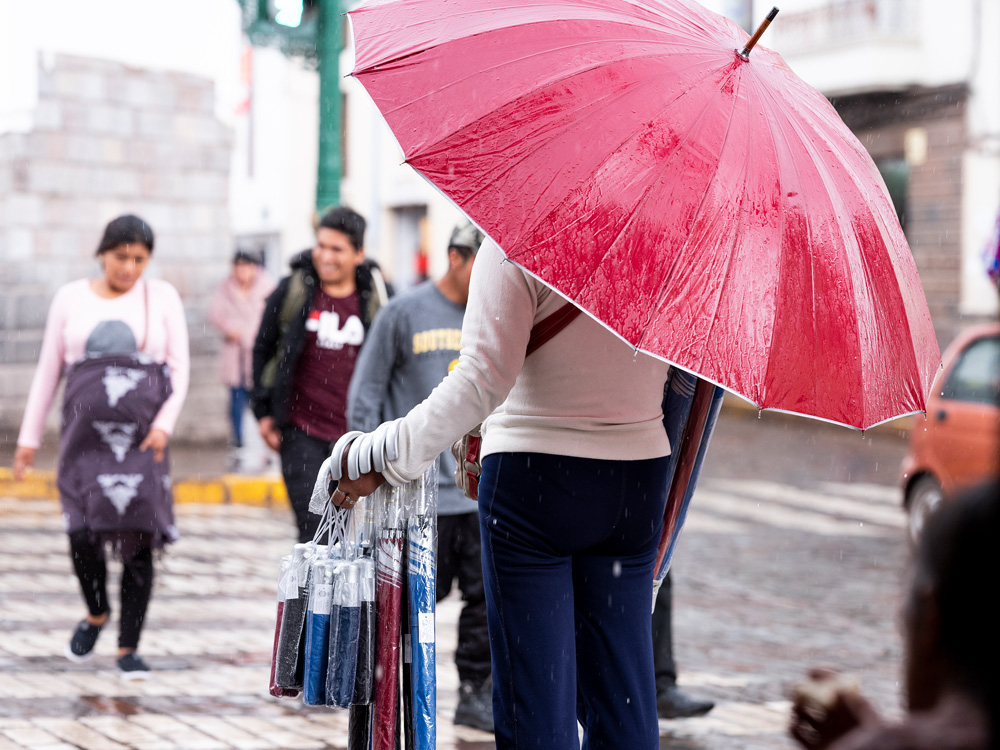 Irgendwann war die Faulheit besiegt und wir machten Cusco unsicher. Wir schauten uns die riesige Kathedrale an. Leider durfte man dort, wie auch in einer weiteren historischen Anlage nicht fotografieren. Nach soviel Hochkultur dürstete es uns nach dem einfachen normalen Leben. Das fanden wir bei unserem ersten Regenschauer im Urlaub in einem kleinen Laden, der frische Obstsäfte verkaufte. Wir schauten auf die Kreuzung und konnten die vielen Menschen beobachten, die sich durch den Regen treiben ließen oder eher relaxed weiter liefen. Dass die Menschen verkaufsorientiert sind, sahen wir kurz nach Beginn des Regens, als eine Frau gleich mit mehreren Schirmen für den Verkauf auf dem Arm auftauchte.