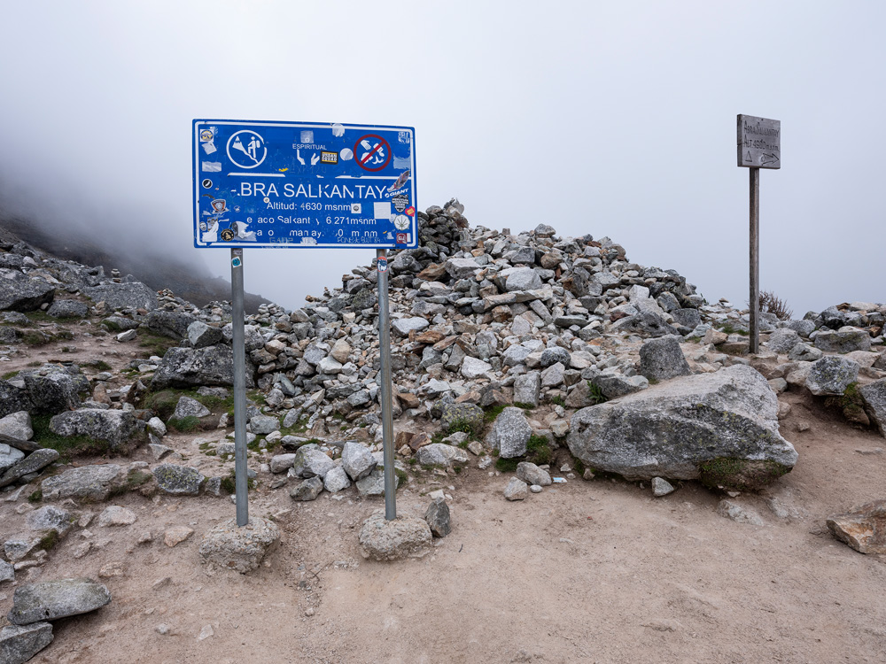 Ich war jedenfalls froh, als ich endlich nach ca. 3,5 Stunden am oberen Ende der Wanderung angekommen war. Es hätte nicht viel länger bergauf gehen dürfen. Das sind die Momente, in denen man sich fragt, wofür man sich eigentlich da hoch quält. Leider war auch noch der Salkantay-Mountain im Nebel und konnte somit diesmal auch nicht die Antwort auf diese Frage liefern. Also war es heute nur der persönliche Ehrgeiz.