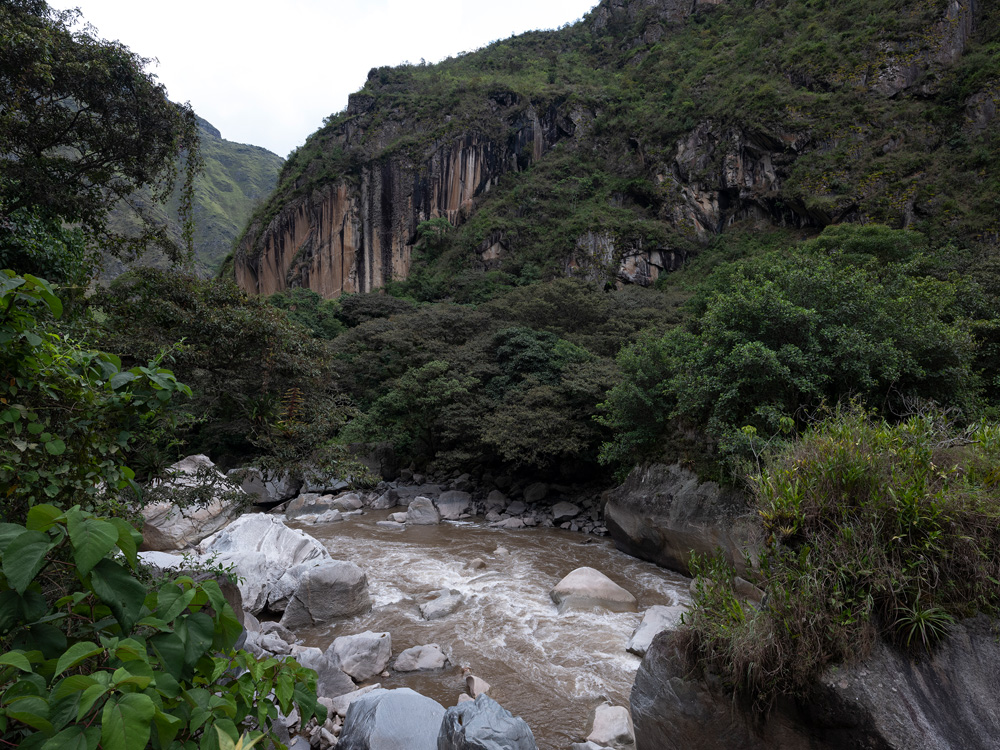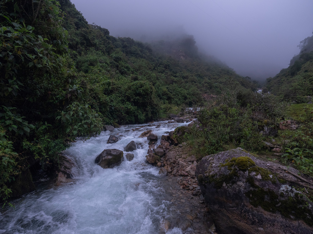 Nun sollte es zu unserer letzten Übernachtung Aguas Calientes und damit zum Einfallstor nach Machu Picchu gehen. Obwohl wir kontinuierlich bergab gingen, begann die Wanderung mit einem üblen Anstieg über 2 bis 3 Stunden. Die Höhe spielte keine Rolle mehr, wurde aber durch ansteigende Luftfeuchtigkeit und Wärme ersetzt. Irgendwie quälte ich mich den Berg hoch und war froh, dass es den Rest des Tages fast nur noch bergab ging. Aber auch das war aufgrund der Feuchte und dem immer wieder klitschigen Untergrund keine durchgehende Freude. Wer selbst schon mehrere Stunden kontinuierlich bergab gegangen ist, weiß auch, wie sich die Beine (besonders die Knie) darüber freuen.