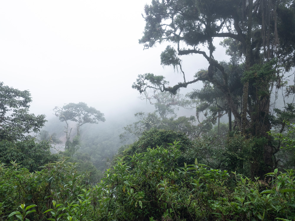Neben der Schlappheit war für Shirley auch Schade, dass sie die grandiose Landschaft, die sich nach der Überquerung des Passes massiv Richtung Regenwald geändert hatte, genießen konnte. Für mich hatte dieser Tag die bisher schönste Landschaft zu bieten. Auch wenn es zwischendrin mal länger regnete, tat es der famosen Kulisse mit Nebel, Flüssen, Wasserfällen und dicht bewachsenen Hängen keinen Abbruch.