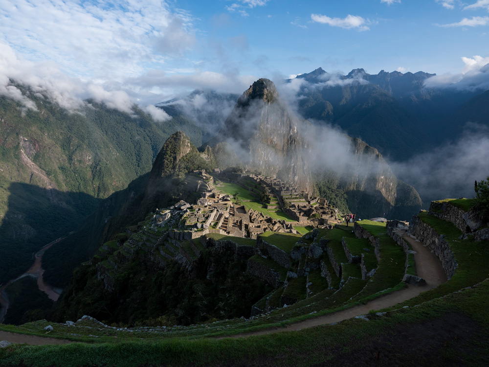 Der Anstieg zu Machu Picchu hatte es noch einmal ordentlich in sich. Man musste in ca. einer Stunde 350 Höhenmeter über Treppen unterschiedlicher, aber meist überdurchschnittlicher Höhe überwinden. Das letzte Mal hatte ich auf den Lofoten so geschwitzt. Oben angekommen zierte sich das Weltwunder noch ein wenig und bedeckte sich mit Nebel, bevor es so gegen 7:00 Uhr in voller Pracht erstrahlte. Ich muss zugeben, es hat mich gepackt. Irgendwie strahlt der Ort, trotz der vielen Leute, eine unglaublich Anziehungskraft aus. Wir waren jedenfalls überglücklich, dass das alles so geklappt hatte.