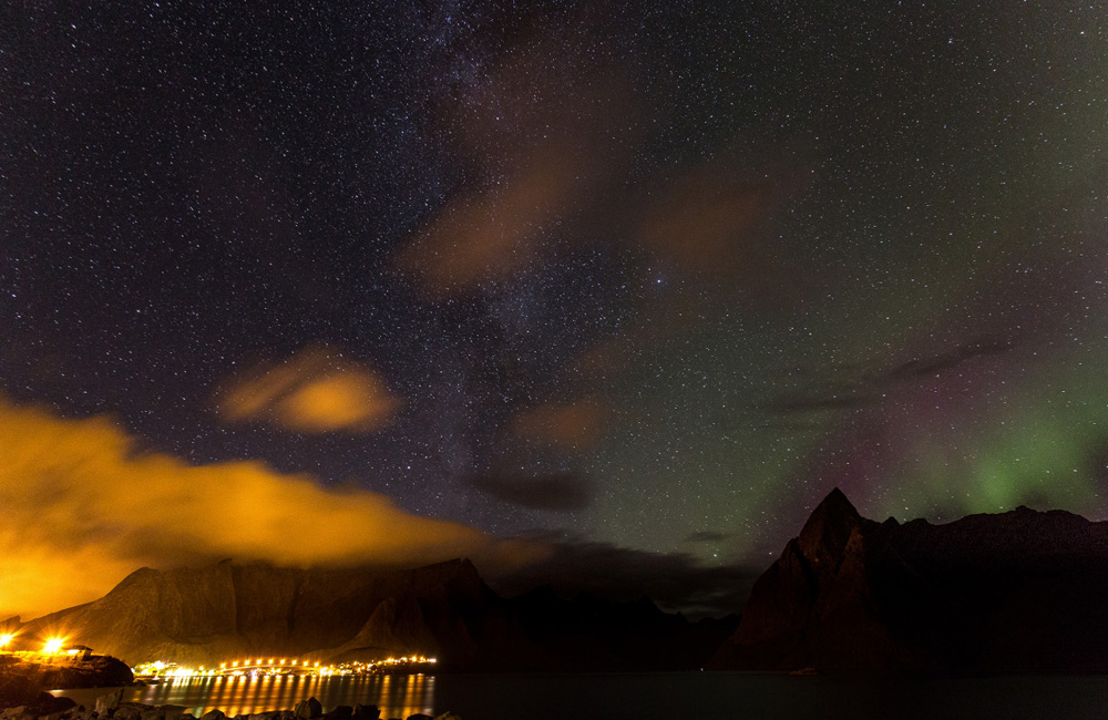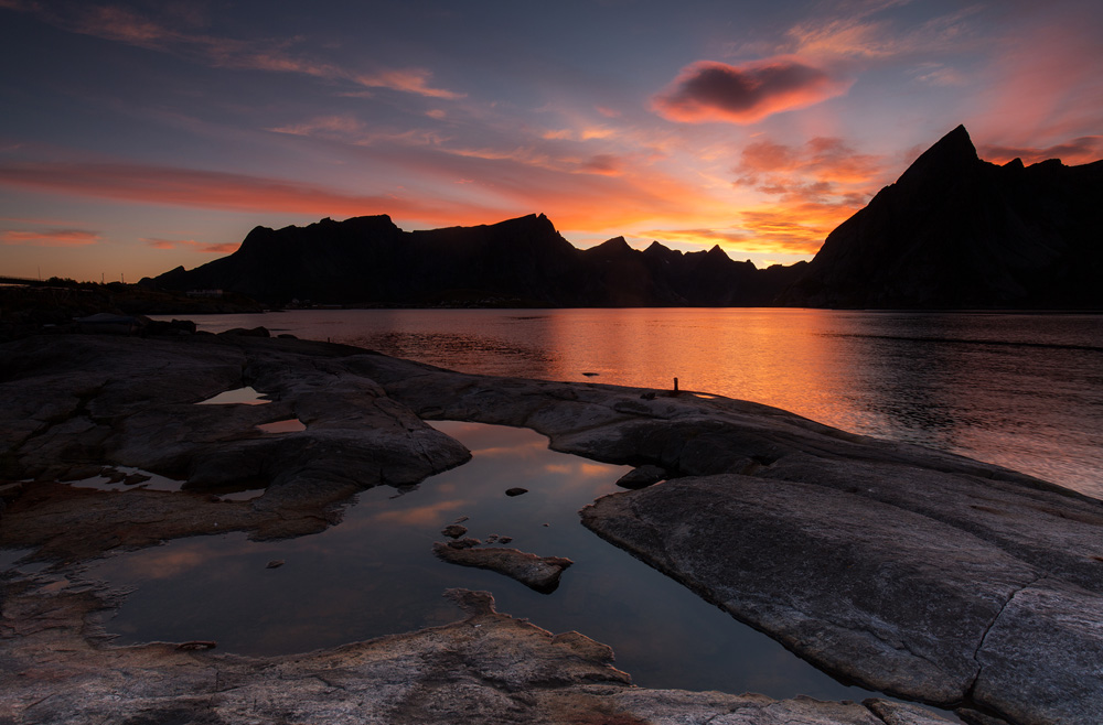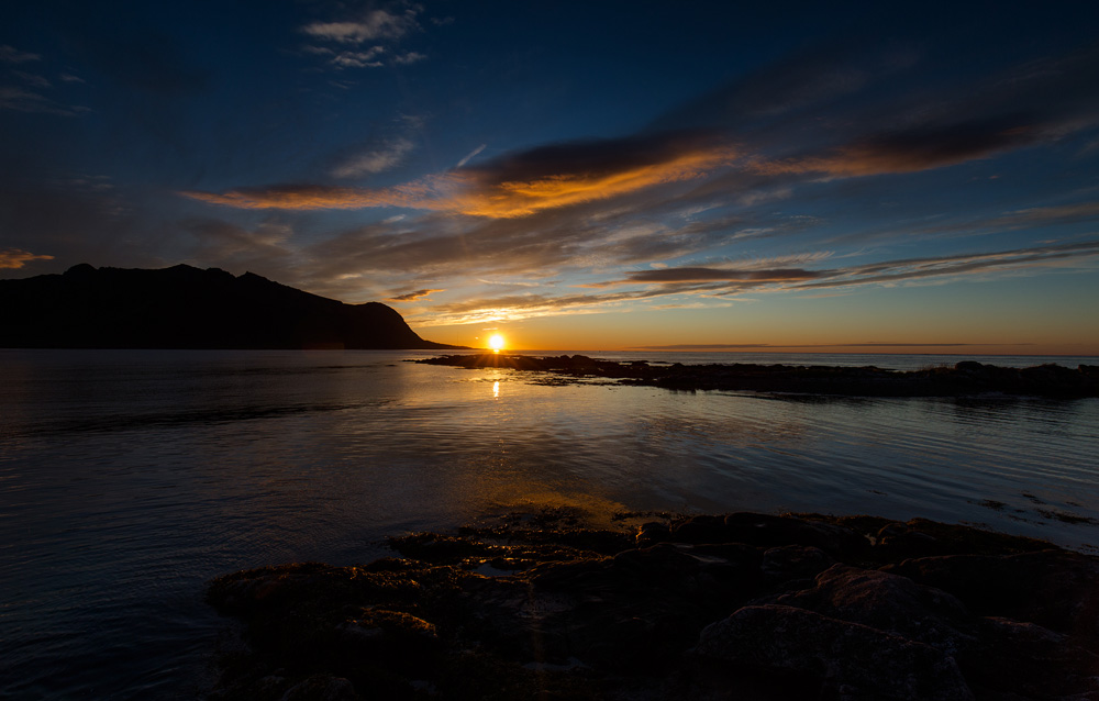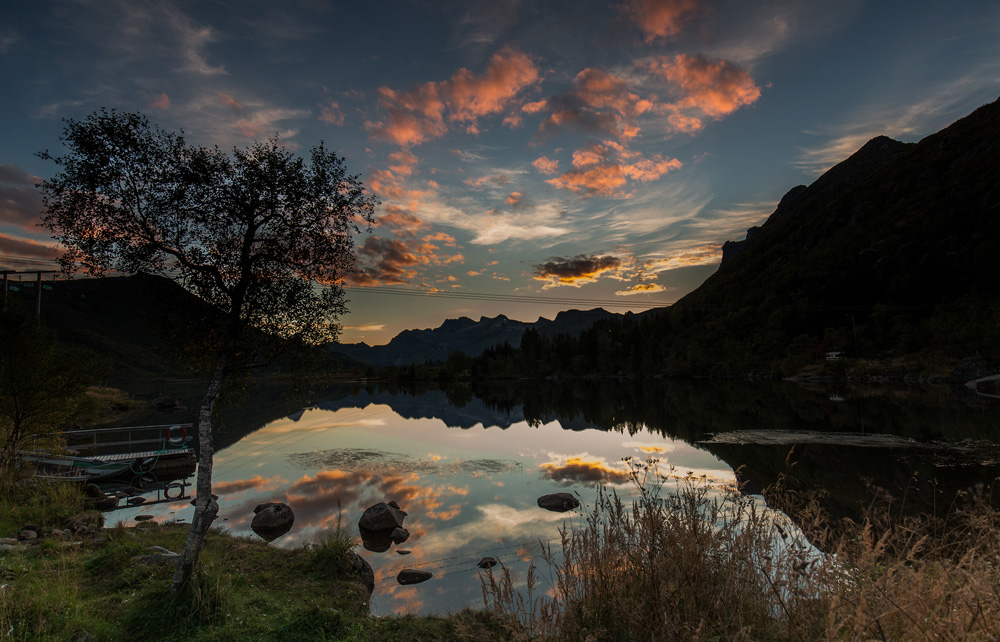 Ansonsten war noch Sonnenuntergangsporno der allerfeinsten Sorte. Dafür sind wir auf die Insel Gimsoy gefahren und haben einen wunderbaren Platz für dieses Spektakel gefunden. Auf der einen Seite war alles orange, im Hinterland brannten die Wolken blutrot. Wir genossen es in vollen Zügen, bis das letzte Rot verblichen war.