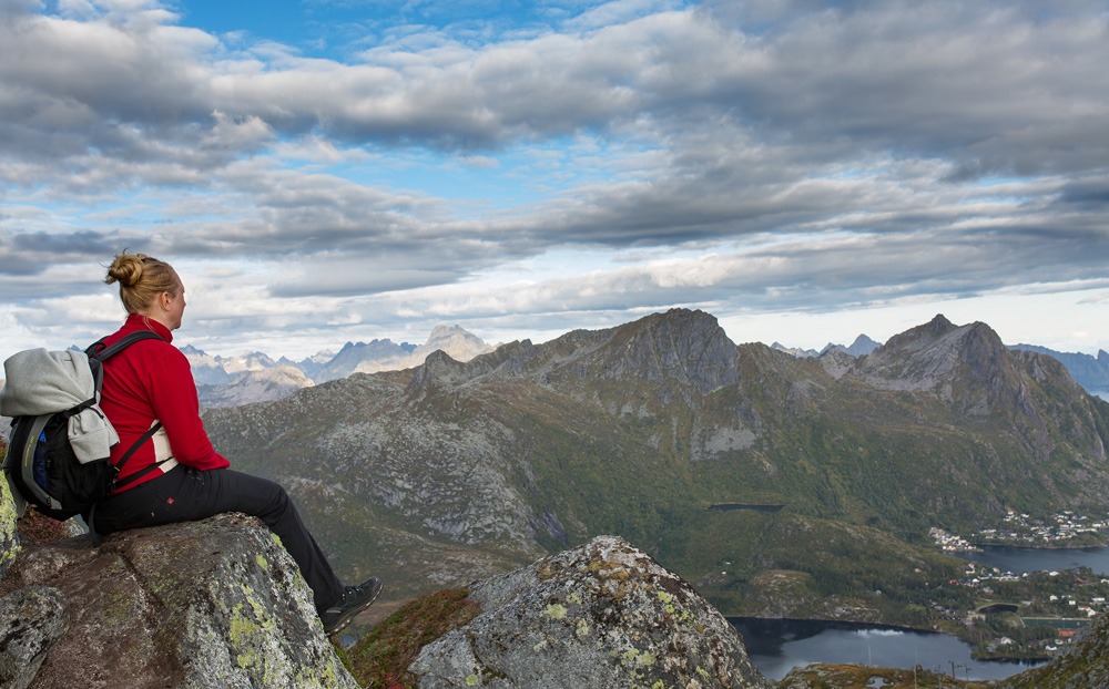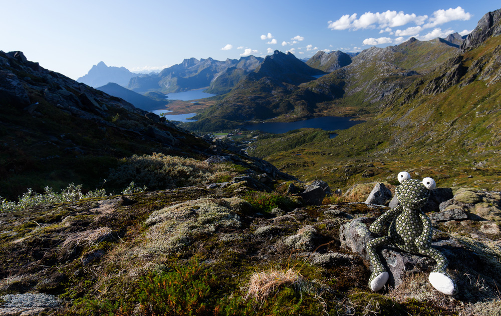 Da wir ja so untrainiert wie selten in den Urlaub gefahren sind, mussten wir dies auch gleich bei einer Wanderung auf den Prüfstand stellen. Lofotenwanderungen zeichnen sich nicht dadurch aus, dass man mal ein oder zwei Kilometer entspannt einfach ebenerdig durch die Landschaft schlendert. Die Meter, die nicht entweder dem Aufstieg oder Abstieg galten, konnte man an einer Hand abzählen. Ich hatte immer wieder das Gefühl, dass mir das Herz aus der Brust springt. Aber auch hier musste ich feststellen, dass sich genau diese Strapazen lohnen, um Aussichten zu genießen, die man ansonsten nie zu Gesicht bekommen hätte.