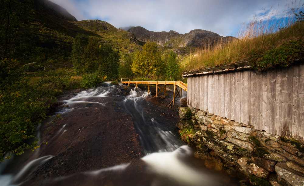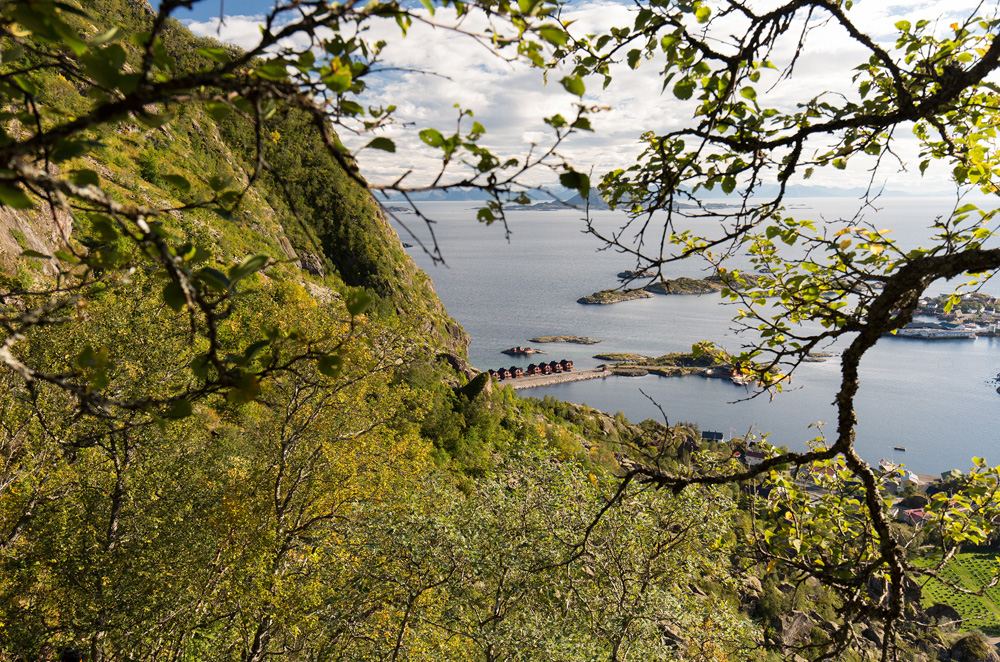 Der Tag galt der Erkundung der näheren Umgebung. Eigentlich wollten wir auf den Reinebringen kraxeln, um dort das Panorambild der Lofoten schlechthin zu schießen (siehe Google unter “Reinebringen Foto”), aber manchmal muss man seine Grenzen erkennen und auch wahren. Der Weg war für uns einfach zu nass, glatt, matschig und steil. Da wir eher Bergwanderer und nicht Bergkletterer sind, haben wir uns nach den ersten 50 Höhenmetern entschlossen, es sein zu lassen. So hatten wir noch genügend Zeit, Orte zu erkunden, die wir sonst nicht gesehen hätten. Ein anderes Pärchen, welches sich aufgrund der anstehenden Besteigung wohl ziemlich in den Haaren hatte, brach nach 2 Minuten auch ab. Hier war aber interessant zu sehen, dass sie mit Gummistiefeln und er in Jeans und glattbesohlten Sneakers unterwegs gewesen sind. Wenn die beiden es bis nach oben geschafft hätten, wäre ich schwer begeistert gewesen. Ich hätte aber eher mit einem Hubschrauberrettungseinsatz gerechnet.