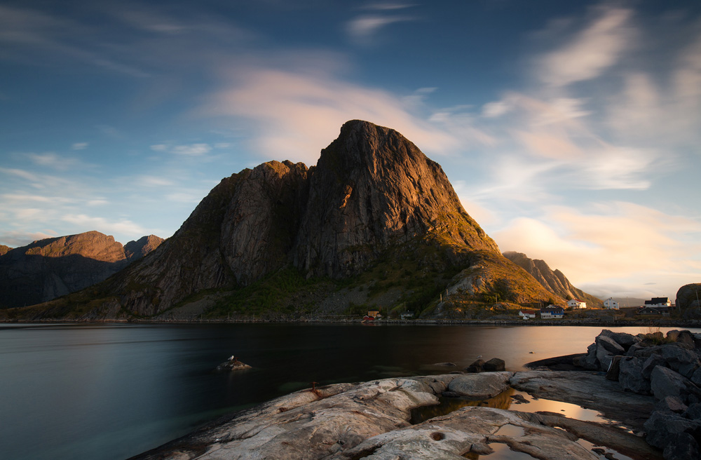 Da das Wetter sich doch von einer besseren Seite zeigte als erwartet, nutzten wir die letzten Sonnenstrahlen und machten uns auf die leichteste Wanderung auf den Lofoten. Tatsächlich kam man ohne Schnappatmung am Ende des Felsens an. Die warme Abendsonne und die Aussicht Richtung Fjord belohnten uns dennoch.