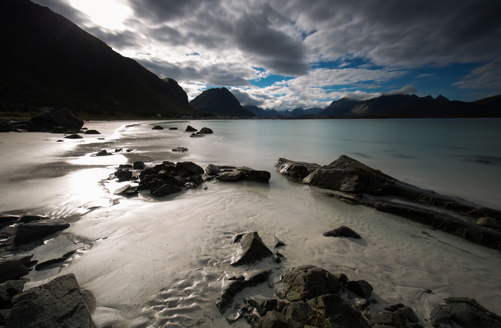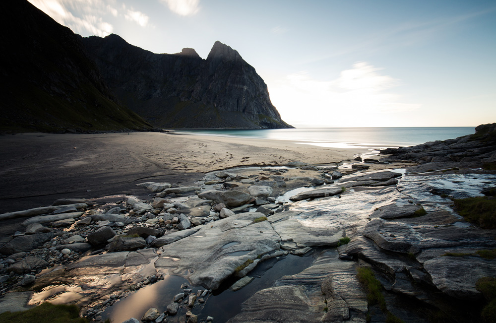 Der westliche Lofotenzipfel ist Geschichte. Der Weg führte uns wieder einen Schritt Richtung Festland. Auf dem Weg nach Henningsvaer hielten wir noch an zwei Stränden, die wir zuvor nur im Regen begutachten konnten. Diesmal hielt das Wetter, wenn auch nicht sonnig, durch. So konnten wir die Bergwanderungen durch einen ausgedehnten Strandspaziergang ersetzen.
