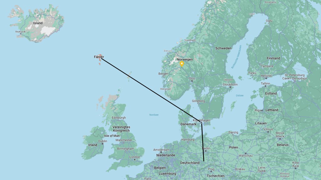 Die Reise beginnt mit einem Stopp für 2 Nächte in Kopenhagen, um dann vor dort aus auf die Färöer zu fliegen. Von Deutschland gibt es keine Direktflüge und Kopenhagen soll sehr schön sein. Auf jeden Fall ist es schon einmal nicht preiswert, dass hat die Unterkunftssuche gezeigt. Auf den Inseln bleiben wir dann 10 Tage. Das sollte reichen, um sich einen Überblick zu verschaffen. Vom Flughafen in die gegenüberliegende Ecke der Insel braucht man etwas mehr als eine Stunde.