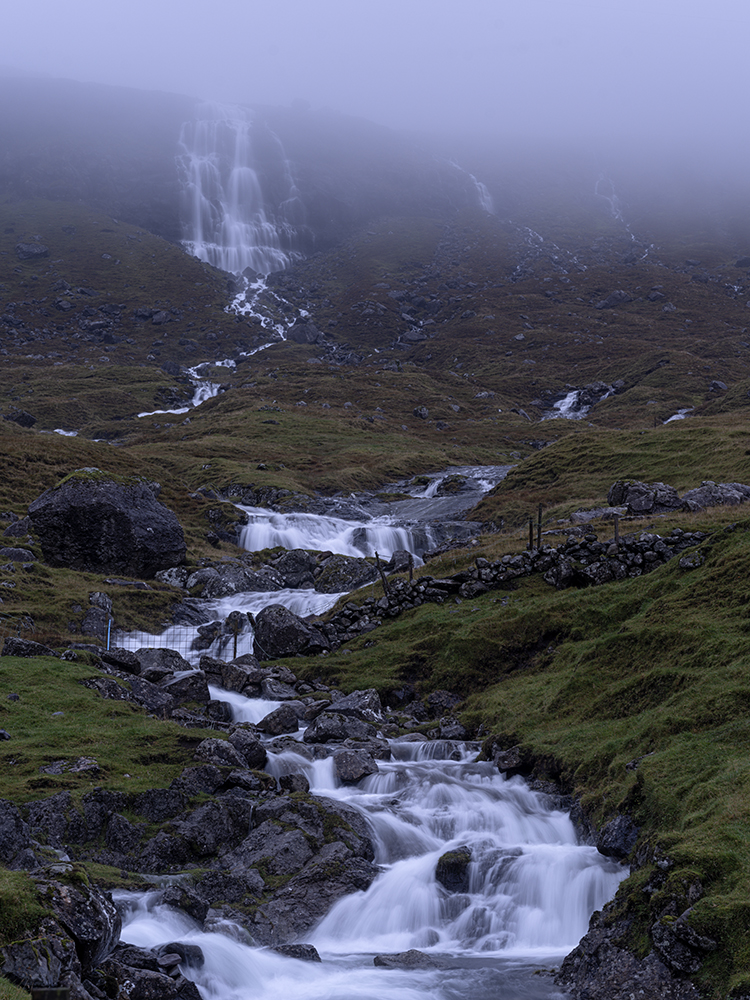 Da der nächste Tag schon wieder mit klassischem Färöer Wetter angesagt war, nutzten wir den Tag bis zum letzten Lichtstrahl aus und fuhren auch die tollen Straßen von den beiden Vortagen mit ab. Wenn man auf den teilweise einspurigen Straßen wartet, um das entgegenkommende Auto durchzulassen, merkt man schnell, wer Tourist ist und wer Einheimischer. Der eine bedankt sich, der andere denkt sich sein Teil. Die Zuordnung lasse ich offen.