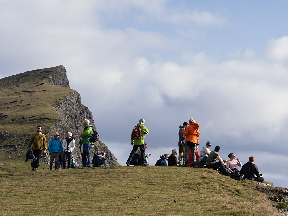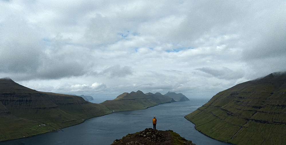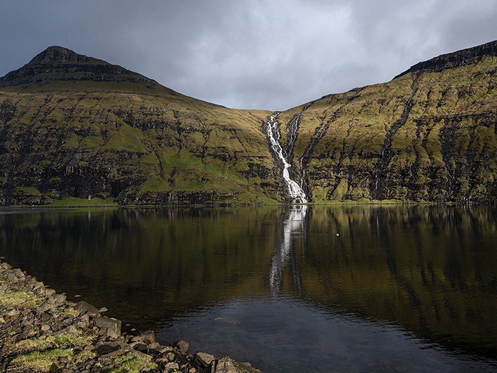 Es gibt diesen einen Spot, bei dem man oben einen See und unten den Atlantik fotografieren kann. Sowas habe ich, bevor ich mich mit den Färöer beschäftigt hatte, noch nie gesehen. Natürlich sollte man gutes Wetter haben, damit das Wasser schön tiefblau leuchtet und die Wiesen ihr saftiges grün zum Besten geben können. Nach dem Wetter der Vortage hatten wir ja schon gar nicht mehr damit gerechnet und auch wenn man die Wanderung bei Sonne beginnt, kann es 45 Minuten später schon wieder ganz anders aussehen. Wir hatten Glück und waren dafür auch sehr dankbar. Da dieser Anblick sehr begehrt ist und eine ungezügelte Masse an Touristen der schlimmste Umweltvernichter ist, hat sich der Eigentümer der Ländereien überlegt, das Gelände nur gegen eine Gebühr begehbar zu machen. Dieses Wandergebühr beträgt fast 30 Euro pro Person. Das ist die teuerste vier stündige Wanderung meines Lebens. Am Eingang wird erklärt, wofür das Geld aufgewandt wird. Zum Beispiel für die Errichtung und Instandhaltung der WC-Anlage. Als ich das WC nutzen wollte, kam mir beim Händewaschen der lockere Wasserhahn entgegen. So könnte man alle anderen Punkte auch durchgehen. Aber wie heißt es so schön: Wer hat, der kann. In dem Fall bezogen auf den Landbesitzer. Der Grad zwischen berechtigtem Interesse der Naturerhaltung und Regulierung oder dem eigenen Gewinnbestreben ist hier aus meiner Sicht in Richtung des persönlichen Geldbeutels ausgeschlagen.