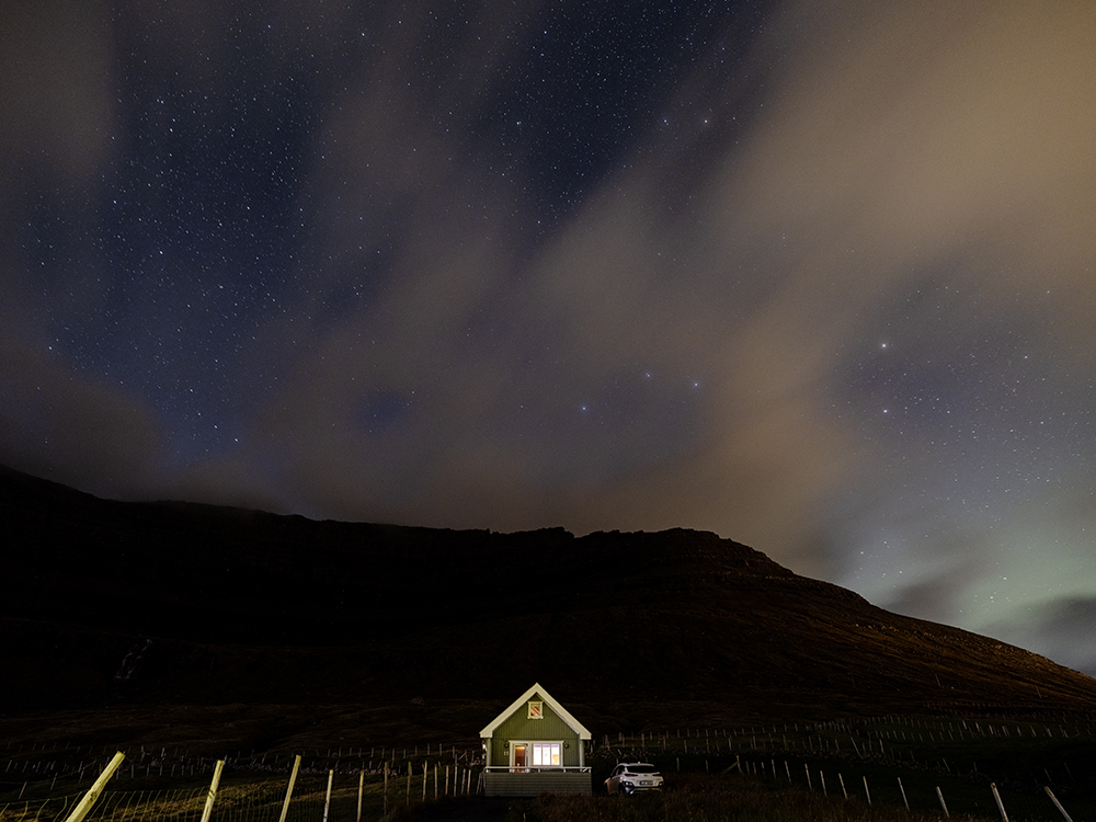 Wir kamen jedenfalls auf unsere Kosten und beendeten den Tag mit einem Essen im Húsagarður. Shirley aß ein Menü aus 5 Gängen. Ich begnügte mich mit leckeren Lammstreifen. Der Weg zurück im Dunkeln fuhr sich dann schnell ab und wir packten schon einmal unsere Sachen für die geplante frühe Abreise zur Insel Kalsoy.
