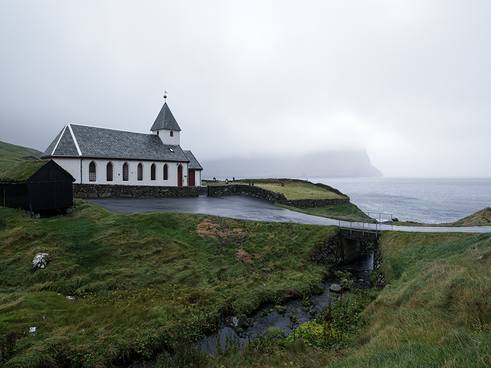 Wir entschlossen uns nach dem Frühstück den Nachbarort Hvannasund zu Fuß zu erkunden. Das gelang uns auch ganz gut und die immer mal wieder auftretenden Regeneinlagen hielten sich in Grenzen. Interessant war, dass immer, wenn die Sonne etwas durchkam, der Regen anfing. Regenbogen gab es aber keinen. Hvannasund besteht aus einem kleinen Hafen, ein paar Häusern und natürlich einer Kirche. So vergingen 1,5 Stunden und wir kehrten wieder in die Hütte zurück. Es gab erst einmal einen Kaffee zum Aufwärmen und später fuhren wir trotz neblig nassem Wetter noch einmal die Straße vom Vortag ab.