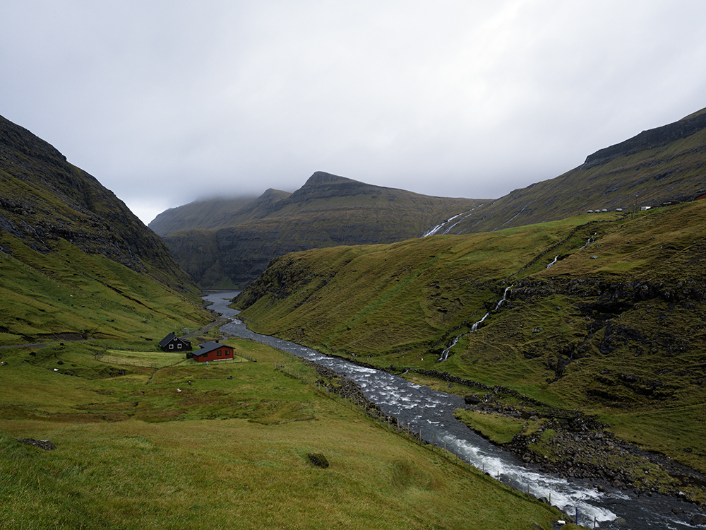 Wir fuhren nach Saksun. Ein kleines Dorf, welches aus wenigen Steinhäusern bestand und idyllisch in einem langgezogenen Tal lag. Glücklicherweise konnte auch der Regen diese Schönheit nicht verdecken. Er verhinderte aber, dass wir längere Zeit zu Fuß unterwegs sein konnten. Bis zu diesem Urlaub war ich mir eigentlich sicher, dass mir meine Regensachen gute Dienste leisten können. Hier reichen 2 Minuten, um dennoch ordentlich durchgenässt wieder beim Auto anzukommen. Wir warteten auch immer wieder auf Mäßigung des Regens. Aber immer, wenn er uns in Sicherheit wiegte, schlug er nach kurzer Zeit zu. Dieser Vorgang zog sich über den ganzen Tag. Wir haben das Tal um Saksun soweit es ging erkundet und sind dann noch die Straße nach Tjørnuvík gefahren.