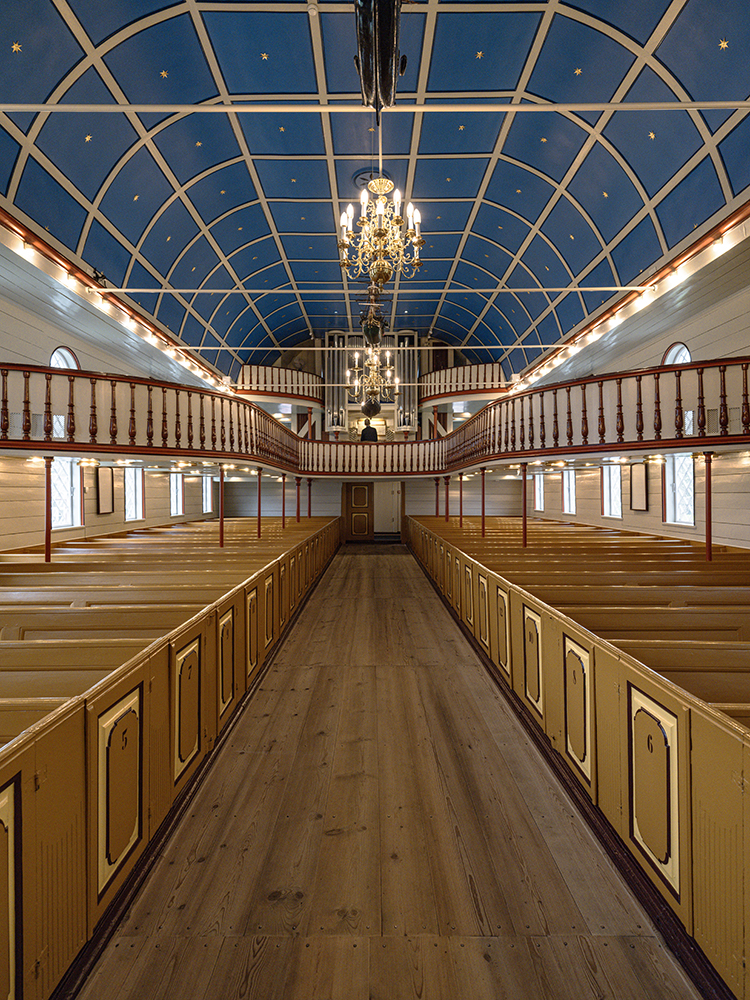Als wir so plauderten, entschied sich das Wetter seine schlechte Stimmung aufzugeben und ein grelles Sonnenlicht kämpfte sich durch die Wolken. Kurz danach packten wir dann unsere Sachen und fuhren nach Tórshavn. Auf dem Weg dahin besuchten wir noch Kirkjubær. Der kleine Ort direkt am Meer hatte eine alte Kirche und einen begonnen Dom zu verzeichnen. Der Dom wurde noch unter katholischer Vorherrschaft begonnen. Als diese endete, endeten auch die Baumaßnahmen. Seit dem stehen da nun ein paar Mauern ohne Dach. Die Kirche in Kirkjubær war dann die erste, in die man auch eintreten konnte. Wir hatten nicht mehr damit gerechnet.