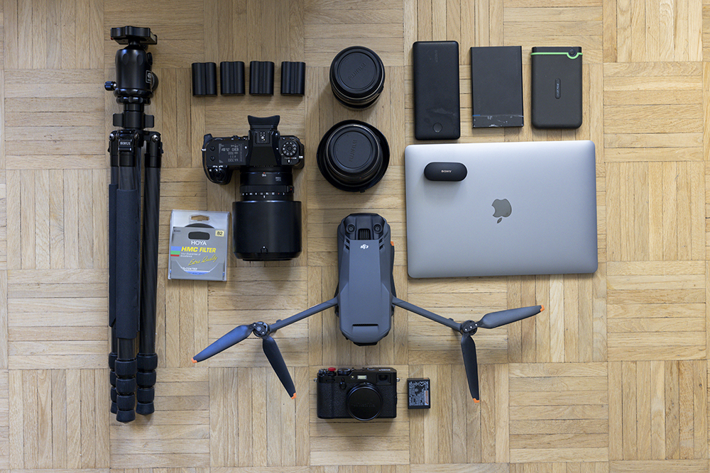 Mal wieder vorgenommen, nicht jeden Mist einzupacken, um dann doch wieder mit 2 schweren Rucksäcken aus dem Haus zu gehen. Da ich wahrscheinlich einige meiner Reisen nicht mehrfach erleben werde, versuche ich natürlich an Technik das mitzunehmen, was mir die Bilder ermöglicht, die ich mir so vorstelle. Diese sind dann meistens nicht mit einem Objektiv getan. Diesmal hatte ich für meine GFX100s 3 Objektive eingepackt. Diese teilten sich den Rucksack mit der kleinen X100F und meiner Drohne. Nebst aller Kabel, Stromanschlüsse und Adapter mussten noch ein Notebook und ein Stativ mit auf Reisen. Da sammelt sich schon einiges an Gewicht an. Da man auf den Färöer Inseln mit sehr viel Regen rechnen muss, wurden die leichten Sommerkleider und Sandalen diesmal nicht eingepackt. Dafür schwere Regen- und Thermohosen.