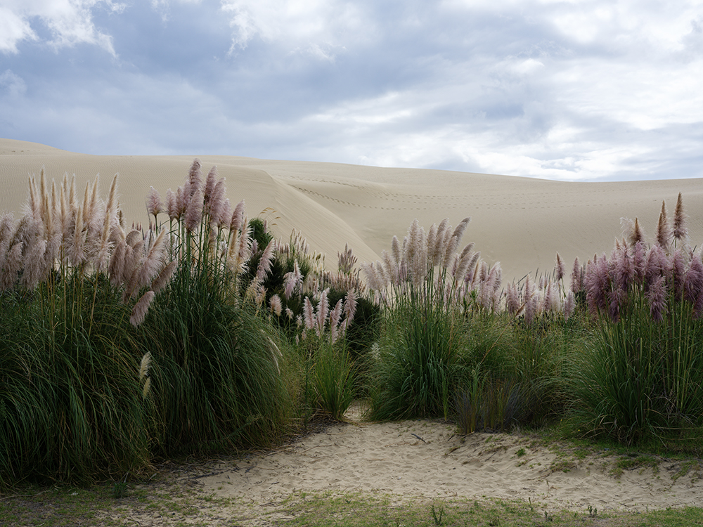 Letzter Abstecher galt dann noch den riesigen Sanddünen. Hier kann man sich ein Board leihen und die Sandberge herunterrutschen. Dafür muss man die Berge natürlich erst einmal hochwandern und da die Sonne, die am Leuchtturm nicht zu sehen war, wieder zum Vorschein trat, kann man sich den Zugewinn an Wärme gut vorstellen. Wir blieben entspannt am Fuße der Dünen, fuhren nach einigen Bildern weiter und kamen in der Abendsonne gestärkt mit leckerem Eis fertig und zufrieden in der Unterkunft an.
