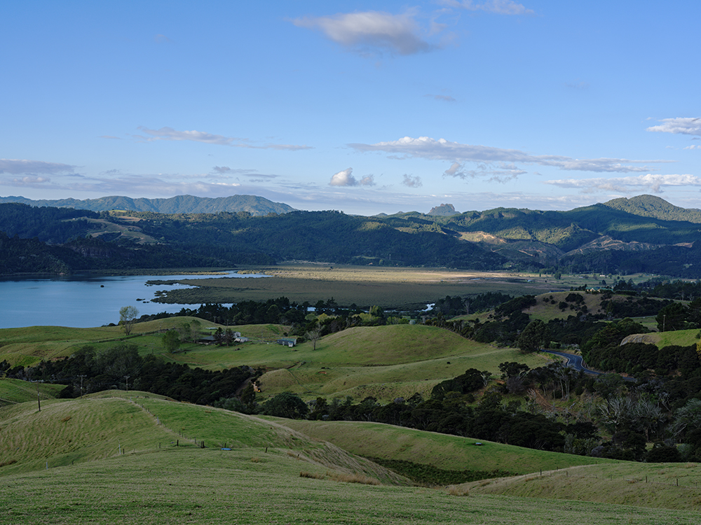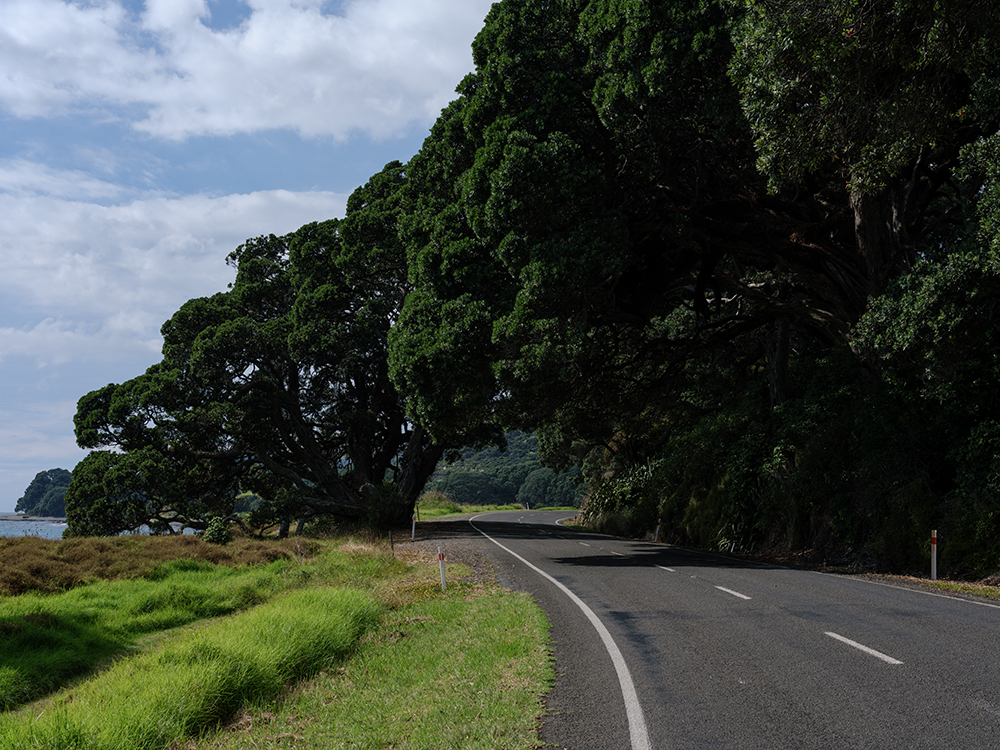 Wir fuhren also einmal quer durch die Stadt, um sie in nördlicher Richtung zu verlassen. Dabei überquerten wir die Harbour Bridge. Nach ca. 40 km entschloss ich mich, von der N1, die einer Autobahn gleicht, herunterzufahren, um mehr über Nebenstraßen zu fahren. Kurz vor der Abfahrt stoppten wir an einer Tankstelle. Als ich vom kurzen WC-Besuch wieder zum Auto zurückkehrte, fragte ich mich plötzlich, wo ich denn meine Kamera hingetan hätte. Manchmal durchschießt einen so ein Gedanke, dass irgendetwas nicht ist, wie es sein soll und in diesem Fall führte dieser Gedanke zu einer Rückkehr an alte Aucklandstätte. Linda hatte die Kamera relativ schnell entdeckt, doch als sie sie nach draußen bringen wollte, waren wir schon im Auto davongedüst. Na zum Glück fiel mir das nicht erst am Ziel der Reise ein.
