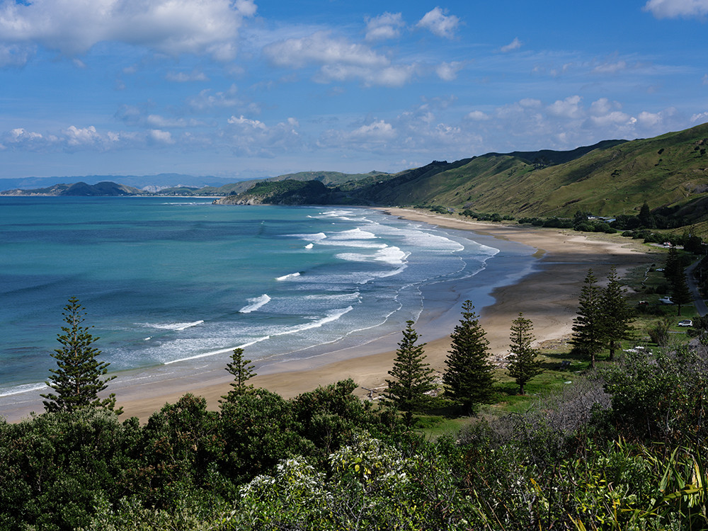 Die Reise führt uns ab jetzt Richtung Süden. Wir fahren wieder durch Auckland und kommen am östlich gelegenen Papamoa Beach an, von wo wir aus nach Hobbiton und an die Cathedral Cove fahren wollen.