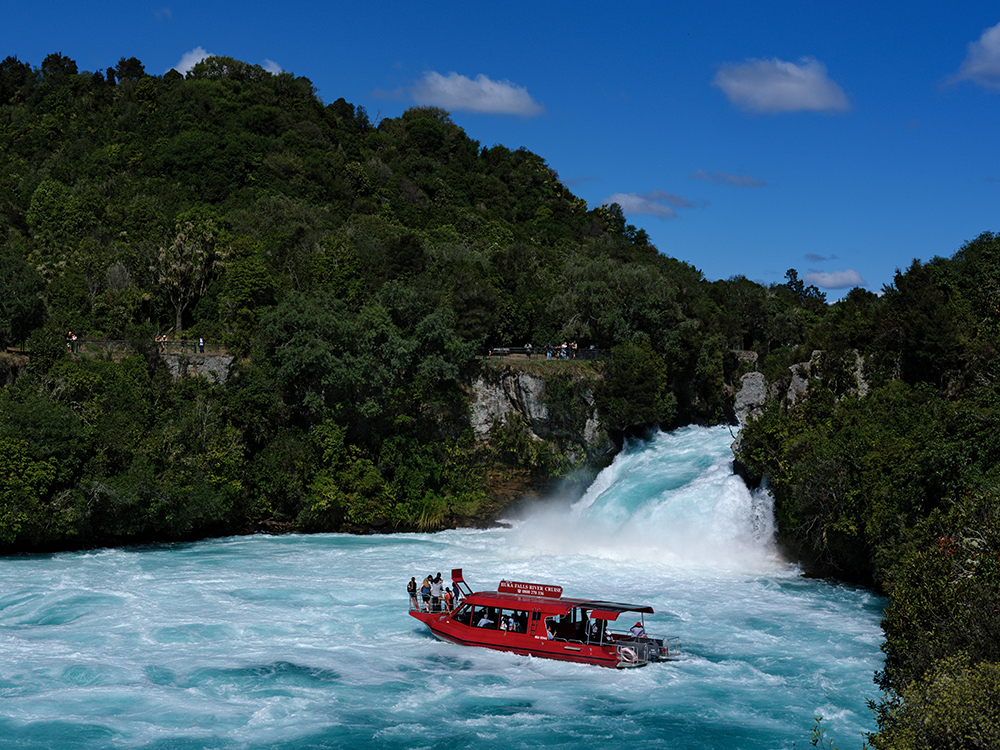 Wir gingen es diesmal ruhig an und fuhren gegen 11:00 Uhr an die Huka Falls. Ein nicht allzu hoher Wasserfall, wo sich aber durch die enge Schlucht Unmengen an Wasser durchquetschen. Wir gingen einen zweistündigen Rundweg und waren zum Glück relativ schnell weg von den Massen, die sich vom Parkplatz aus in Richtung des Aussichtspunktes walzten. Wie aber fast überall auf der Welt: Sobald es mit Anstrengung verbunden ist, nimmt dies kaum einer auf sich. Der Weg war dann überraschend abwechslungsreich. Ansonsten ist um die Falls herum viel Halligalli. Man kann mit dem Speedboot durch den engen Canyon hämmern und sich bei großem Geschrei nassspritzen lassen. Wir blieben beim trockeneren Zu-Fuß-Erkunden.