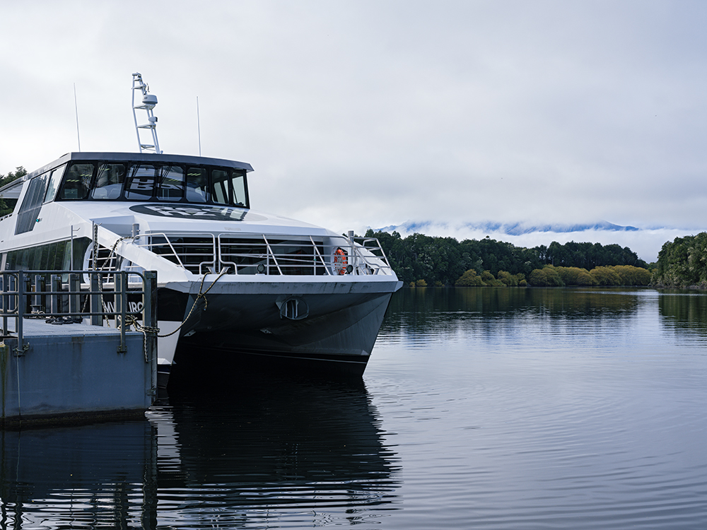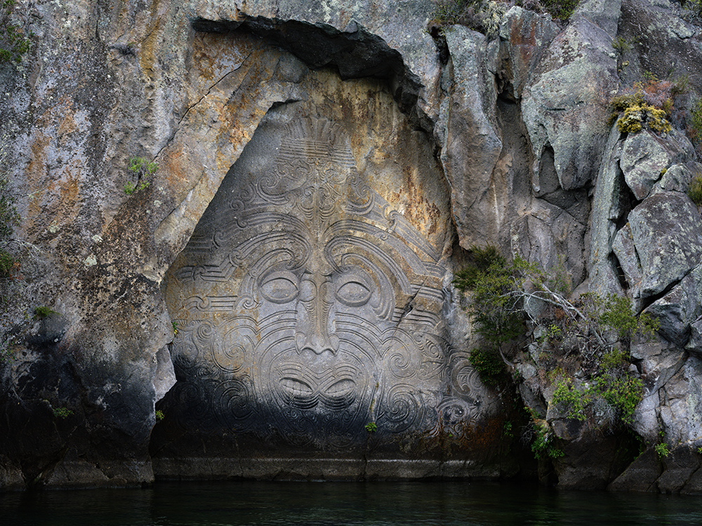 Der Vormittag wurde auf dem Lake Taupo herumgeschippert. Also wir ließen uns schippern auf einer Dampfbootkopie, die nicht dampfte, aber nostalgisch aussah. Die meisten der Seebefahrer entschieden sich zum Glück für einen modernen Katamaran. Damit waren wir die lauten größeren Gruppen los und konnten die 2 Stunden genießen. Hauptattraktion war eine Felszeichnung der Maori, die schon einiges hermachte.