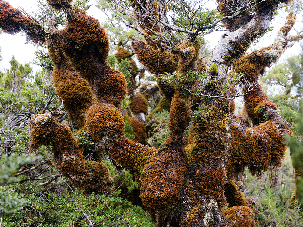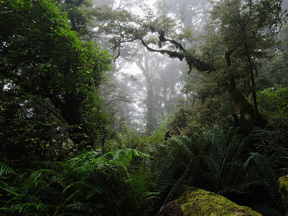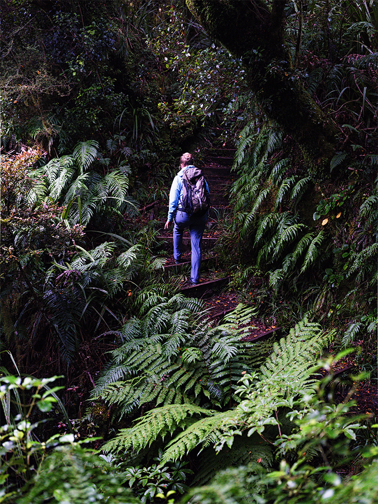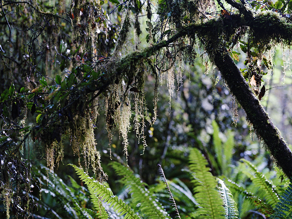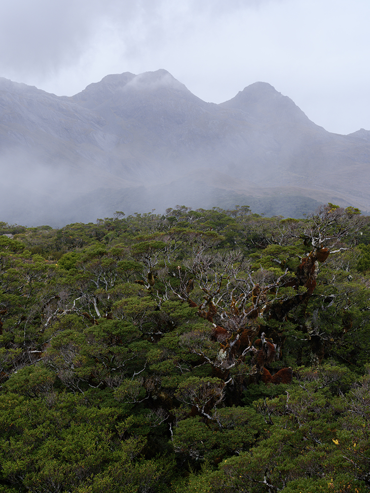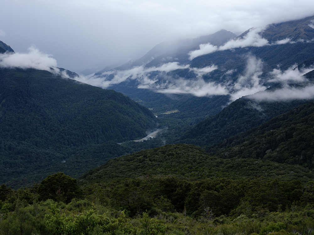 Auf der Wanderung trafen wir dann einen 19 jährigen Deutschen, der 3 Monate auf Neuseeland verbringt und in seinem Auto übernachtet. Also er übernachte in einem normalen PKW. Wir verstanden uns jedenfalls gut und wanderten die 3 Stunden gemeinsam. Der Weg war recht einfach zu laufen und bot herrlich vermooste Wälder, die aber wieder ganz anders waren, als die vom Vortag. Als wir dann oben angekommen waren und auf eine geile Aussicht hofften, fing es aus der Wolke, die sich nach oben geschoben hatte, zu regnen an. Das nervte zwar etwas, dafür gab es auf dem Rückweg mystische Nebelwaldatmosphäre.