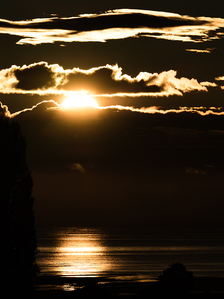 Wir kamen dann nach kurzem Abstecher ins Hinterland zum Sonnenuntergang wieder. Anfänglich durchstach das Sonnenlicht ein wenig die Wolken. Als die Sonne aber kurz vorm Verschwinden war, knallte sie noch einmal richtig unter den Wolken hervor, um dann nach dem Untergehen den Himmel in alle Rottöne gleichzeitig zu tauchen. Wahnsinn!