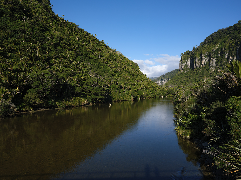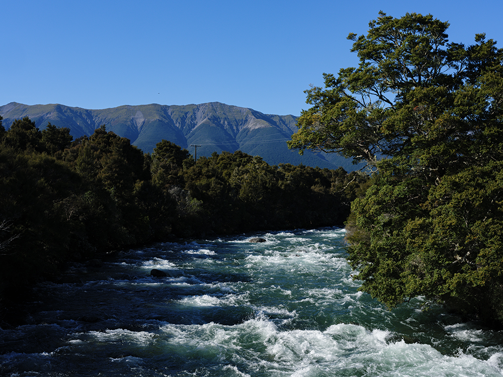 Dabei fährt man eine riesige Beule die sich Richtung Osten ausbreitet ab. Hier wird alles sehr ursprünglich. Es gibt Ländereien, die fest in Maori Hand sind. Die Fläche, die für die Tierzucht herhalten muss, reduziert sich deutlich. Und die Anzahl der Autos auf der Straße wird minimiert. Dabei ist die Landschaft sehr abwechslungsreich und es gibt kaum noch Dörfer und nur gelegentlich Häuser am Straßenrand.