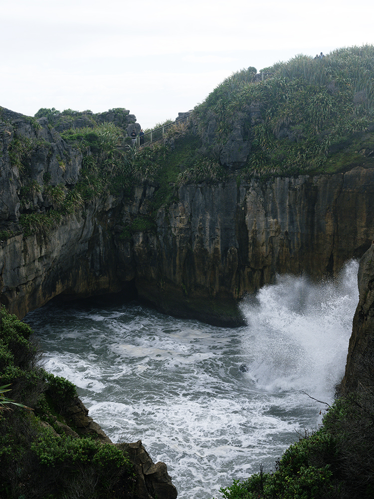 Auf jeden Fall gab es für die ersten Ausflugsstunden viel zu sehen. Der schwarze Strand bei Karekare war gigantisch. Tobendes Wasser, breiter schwarzer Strand und menschenleer. Pünktlich zur Rückkehr am Auto fing es dann an zu schütten und hielt noch bis zum Abend an.