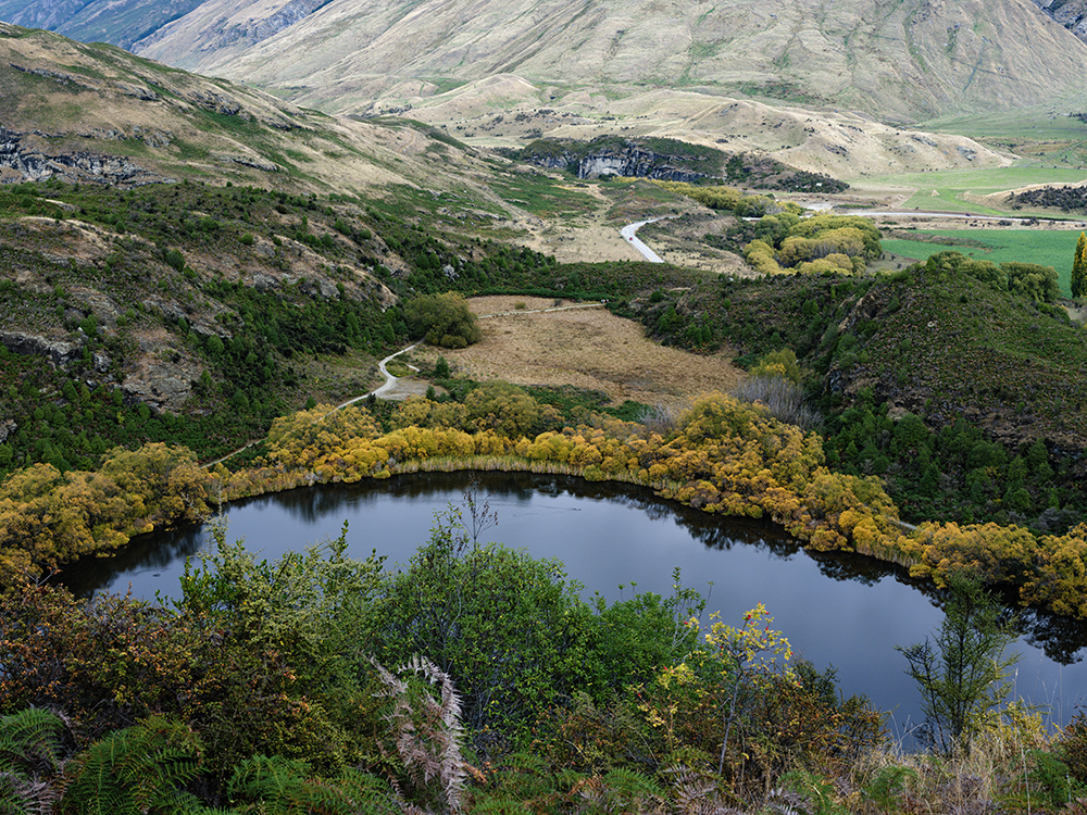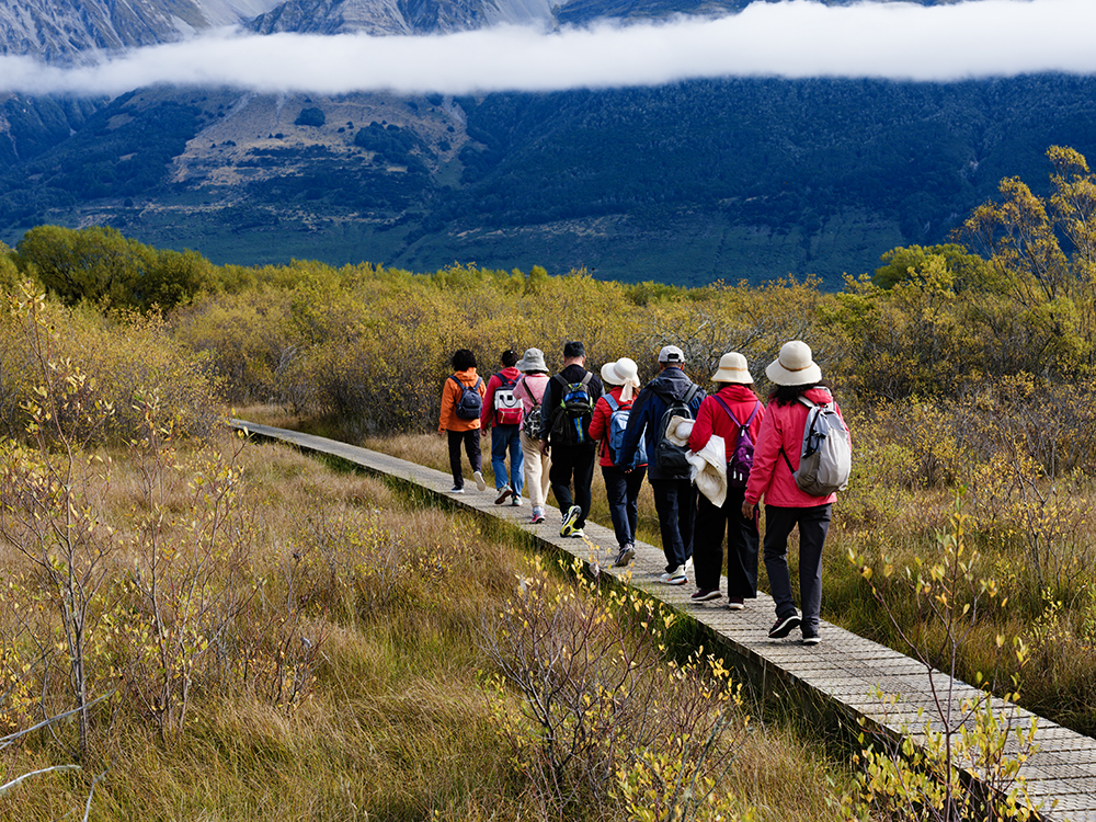 Die Fahrt nach Glenorchy hatte sich dennoch vollauf gelohnt. Alleine in dem kleinen Ort gab es eine Wanderung, bei der man die Landschaft bewundern konnte. Die hohen Berge der Umgebung wurden mit herbstlichen Farben umrahmt. Es waren auch nur wenig andere Touristen diesen Weg gelaufen. Eine Reihe Asiaten (ich tippe auf Chinesen) fügte sich nahtlos auf dem Boardwalk in die Umgebung mit ein. Es ist immer wieder lustig zu sehen, wie der Fotograf der Gruppe, der auch gleichzeitig Animateur sein muss, alle genaustens anweist, damit die richtigen Posen vor den tollen Panoramen gemacht werden können. Und alle machen mit.
