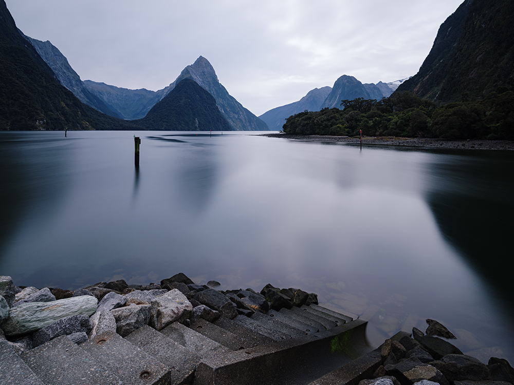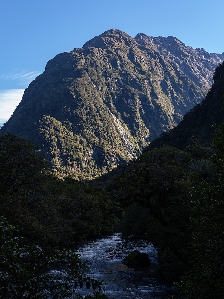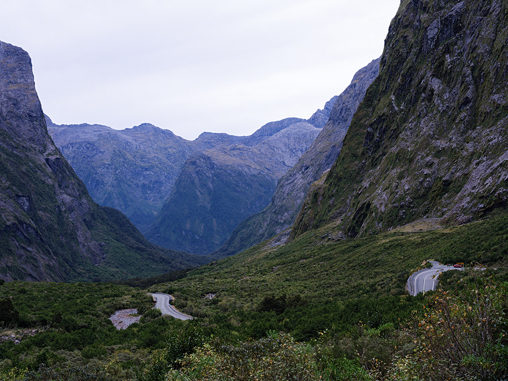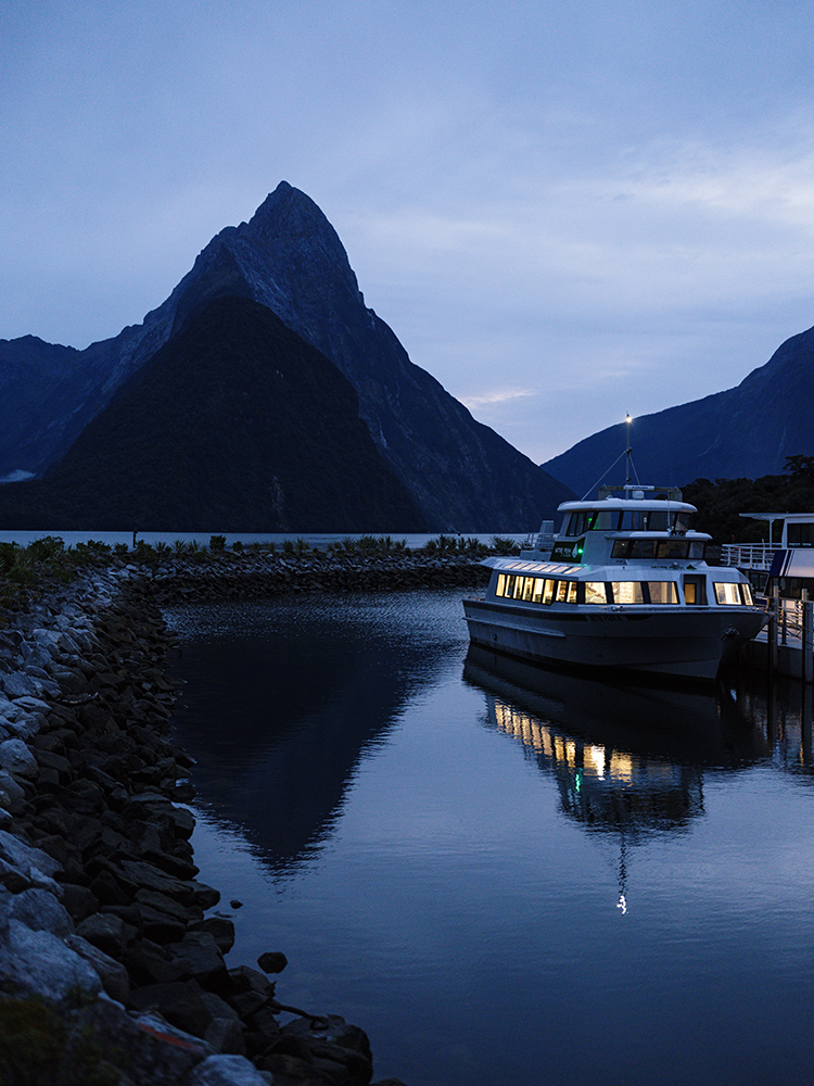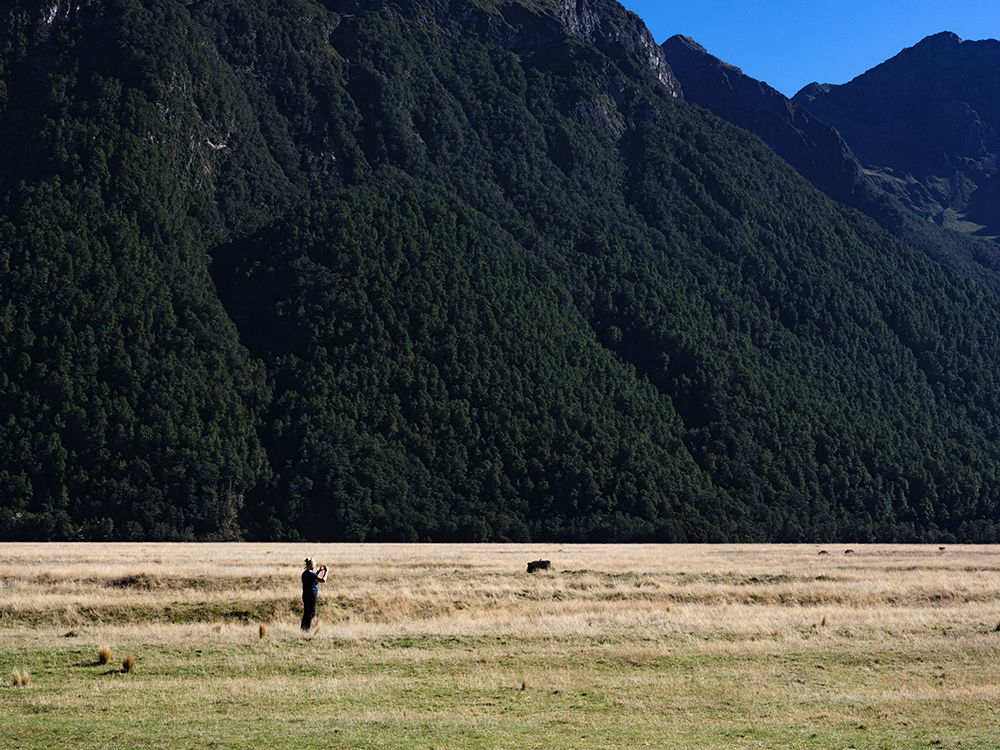 Es handelt sich dabei um einen Fjord, der 120 km von Te Anau entfernt liegt. Die Straße dahin soll durch atemberaubende Landschaft führen. Über die Jahre wird der Ort aber, wie gefühlt alle schönen Orte auf der Welt, von Menschenmassen heimgesucht. Zeitlich lag unsere Fahrt aber so perfekt, dass die Massen uns entgegenkamen und wir eine erstaunlich ruhige Fahrt hatten. Auch im Fjord selber waren wir zur Abendstimmung fast allein. Die Vorschusslorbeeren waren auf jeden Fall gerechtfertigt. Die Landschaft war der Hammer.