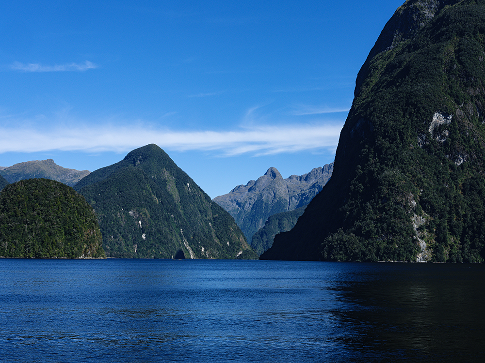 Das Ziel war der Doubtful Sound. Doubtful bedeutet zweifelhaft und bezog sich darauf, dass Captain Cook 1770 nicht sicher war, ob er sein Segelschiff in dem Fjord hätte navigieren können, weil die Wände sehr steil waren und die Winde nicht vorhersehbar. Heutzutage spielt das natürlich keine Rolle mehr. Der Fjord wurde in den 60igern in die Zivilisation geholt, als dort ein unterirdisches Wasserkraftwerk gebaut wurde. Jetzt gibt es eine 20 km lange Straße zwischen dem Lake Manapouri und dem Einstieg zum Doubtful Sound.