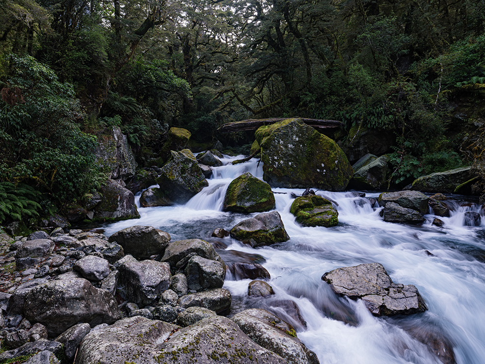 Einen weiteren Stopp verdienten sich die Lake Marian Falls. Auf dem Weg zum Lake Marian kommt man nach ca. 20 Minuten an einem reißenden Fluss vorbei. Diese kraftvollen Wassermassen sind immer wieder beeindruckend. Der Temperaturverfall innerhalb des Waldes direkt am Fluss war auch nicht zu unterschätzen.