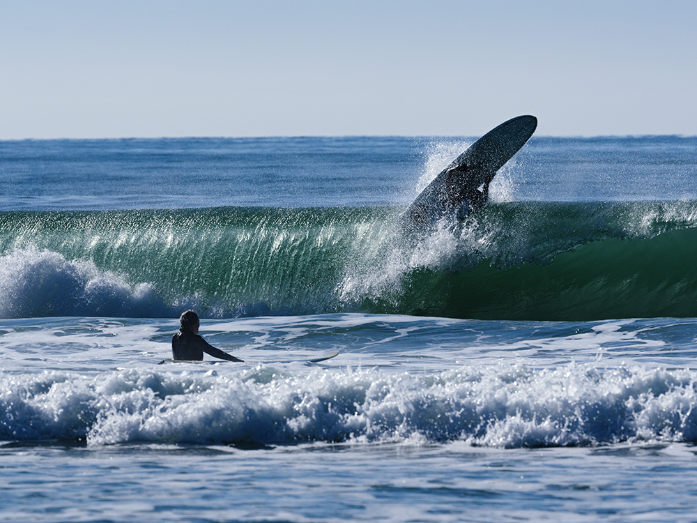 Da Feiertag war, ich glaube zu Ehren australischer und neuseeländischer Kriegsveteranen, waren die Straßen angenehm leer. Wenn wir direkt zu unserer vorletzten Unterkunft, 30 km von Oamaru entfernt, gefahren wären, wären wir in 2 Stunden da gewesen. Da die Sonne aber unverschämt am blauen Himmel schien, genehmigten wir uns kurz nach Dunedin einen Abstecher zum Strand. Einige Surfer versuchten ihre Wellenkompetenz darzulegen, aber ich schiebe es mal auf die schnell brechenden Wellen, dass diese nicht sonderlich sichtbar wurde. Die Zeit am Meer ist immer wieder entspannend.