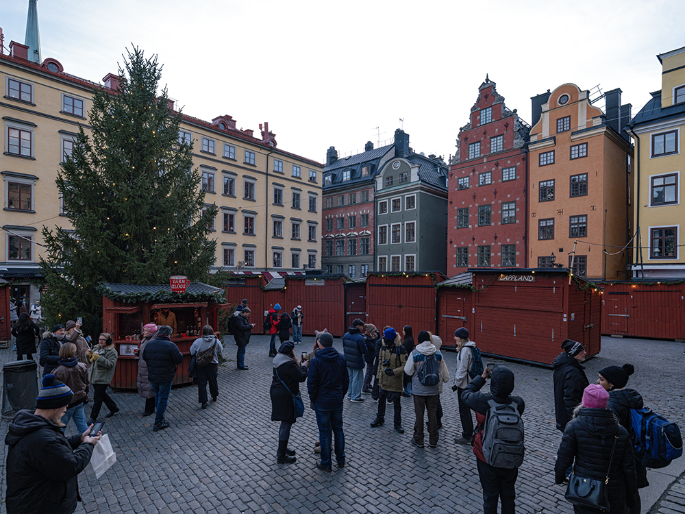 Derzeit geht in Stockholm 8:45 Uhr die Sonne auf und 14:45 Uhr unter. Aufgrund des Mietwagens und der schlechten Parksituation im Zentrum wohnten wir etwas außerhalb. Wir fuhren 33 Minuten mit der U-Bahn ins Stadtzentrum von Stockholm. Die Sonne strahlte und wir tauchten sogleich in diese tolle Stadt ein.