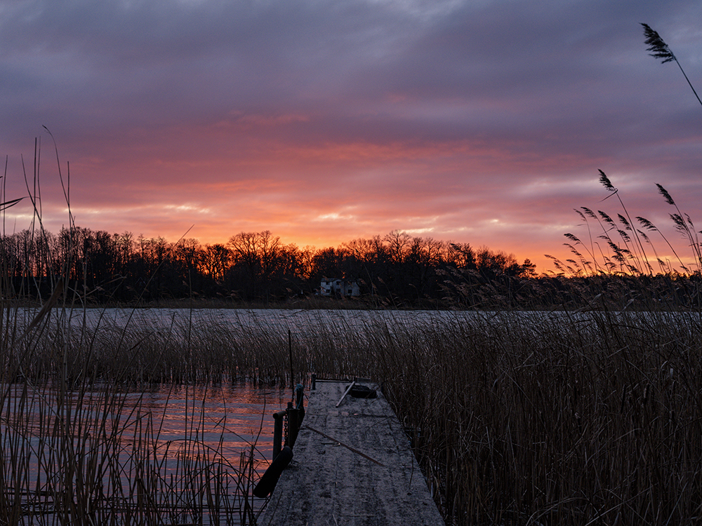 An diesem Morgen ließ die Sonne auf sich warten und wir konnten in Ruhe frühstücken, ohne das Gefühl zu haben, etwas zu verpassen. Nach der Verköstigung strahlte die Sonne aber wieder über beide Ohren und auch wenn die Sonne immer die selbe ist, ist ihr Licht jeden Tag etwas anders. Wir gingen also mal wieder eine Runde in der Nähe des Hauses und kamen diesmal an einem kleinen Grundstück direkt am Wasser vorbei. Es schien jedenfalls im Winter nicht bewohnt zu sein. Die Lage unten am See war sehr privilegiert.