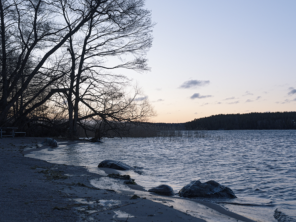Unsere neue Unterkunft erlangten wir nicht auf Anhieb. Die bei Airbnb verlinkte Adresse führte in ein Waldstück ohne erkennbare Behausung. Wenn man die Adresse, die darunter stand, per Hand eingab, kam man wenige Kilometer später zum Ziel. Wir kamen dann in eine dünn besiedelte Gegend und wurden von Sune, unserem Gastgeber, schon erwartet. Wir bekamen das Innenleben der Unterkunft gezeigt und vor allem die Bedienungsanleitung der Sauna. Das Haus ist sehr geräumig und wir haben es nur ca. 400 Meter zum See. Dort sind wir auch gleich mit dem letzten Licht (gg. 15:00) hingelaufen.