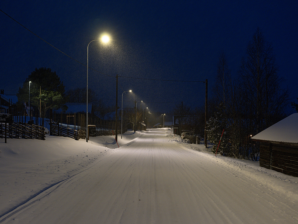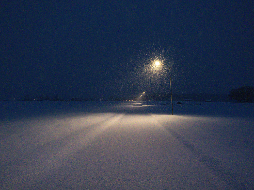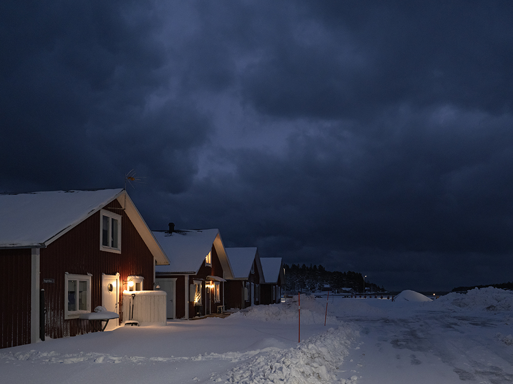 Wir verbrachten den restlichen Tag dann im Haus. Ich schaute, wie meistens um diese Zeit im Jahr, Darts WM und raffte mich zum Abendlicht gegen 16:00 noch einmal auf und ging hinaus, um die Kunstlichter der Häuser und Laternen im Schneegestöber zu fotografieren.