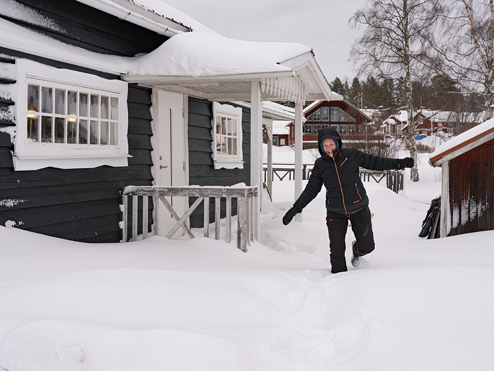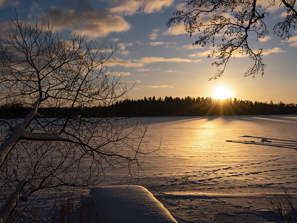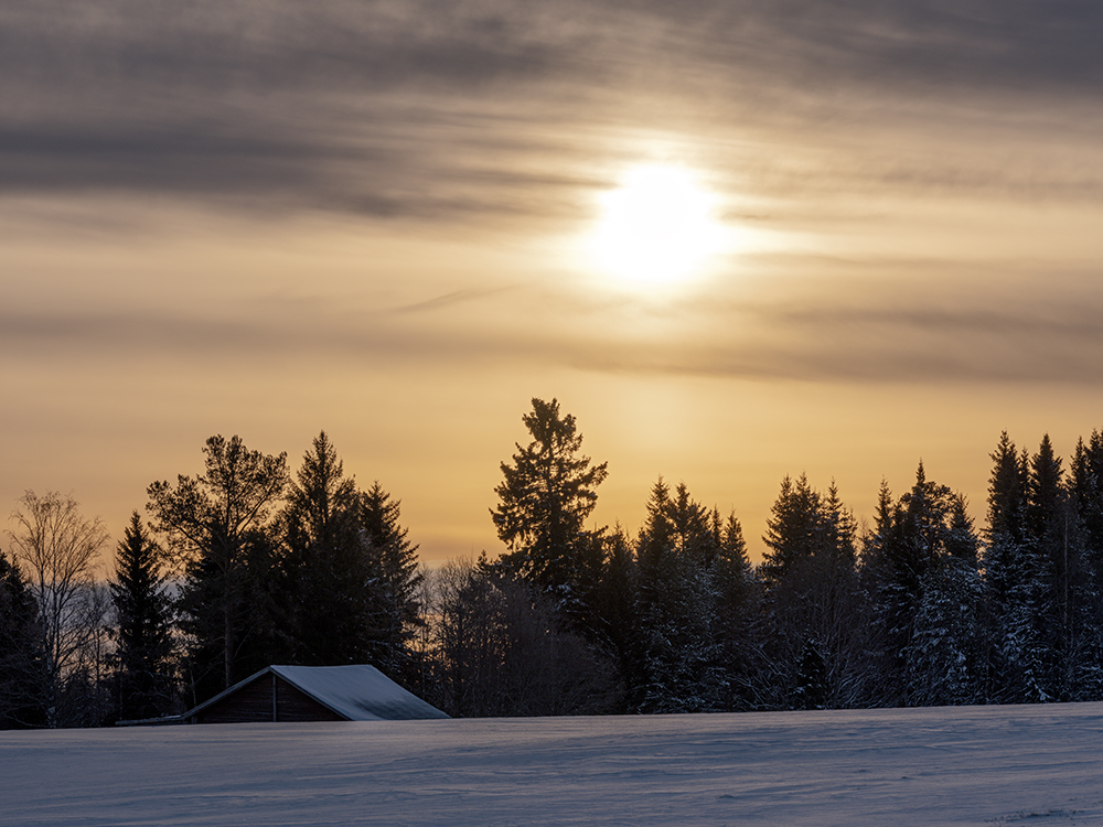 Hier können wir jetzt den Winter genießen, wie wir uns ihn vorgestellt haben. Ein frisches Lüftchen, unter den Füßen knarzender Schnee, Stille und Sauna.