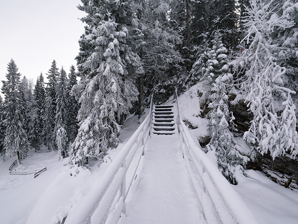 Die Fahrt selber war ziemlich unspektakulär. Es gab viel Schnee und zum Glück wenig Autos. Die letzten 1,5 Stunden fuhren wir eine parallel verlaufende Straße, die nochmal schön durch die tiefverschneiten Winterwälder führte.
