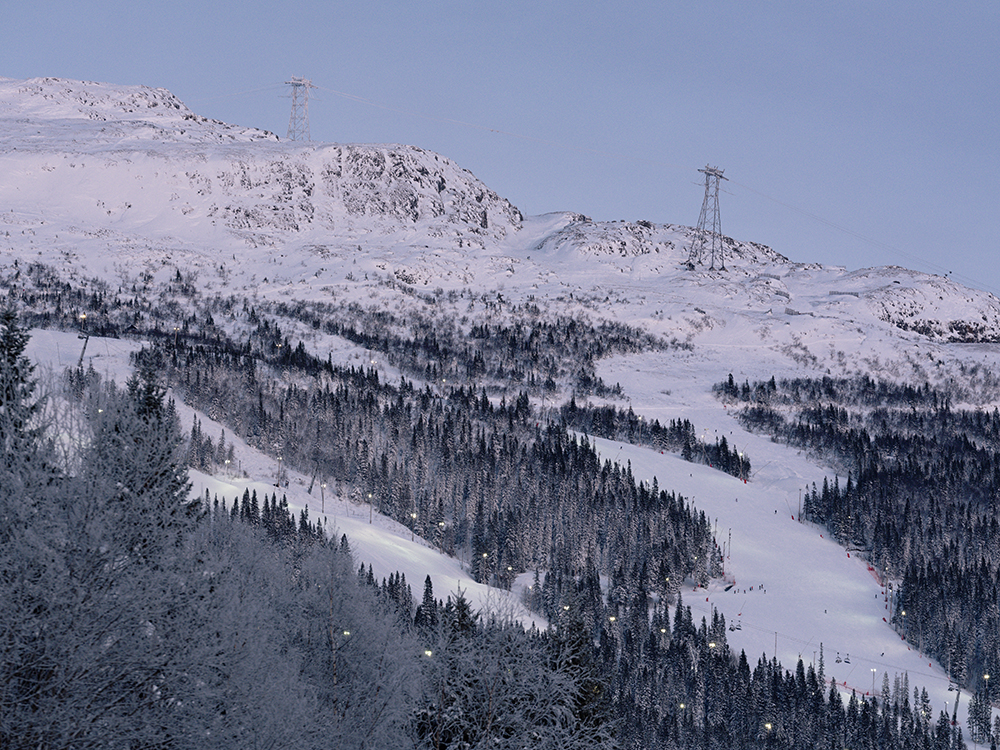 Frühstück und Gequassel mit Sune führten dann zu einer Abfahrtszeit gg. 12:15 Uhr. Wir wollten zum Tännforsen, dem größten Wasserfall in Schweden. Die Fahrt war mit 1:07 Stunden angesetzt und führte über den Skiort Äre. Auf dem Weg dorthin veränderte sich die Landschaft und wurde immer bergischer. Dann tauchten am Horizont die hohen Berge mit ihren Abfahrtshängen auf. Dieses Skigebiet liegt nicht weit von der norwegischen Grenze entfernt. Man konnte auch von unten die Pisten sehen und mein Eindruck war, dass man hier gut Ski fahren kann.