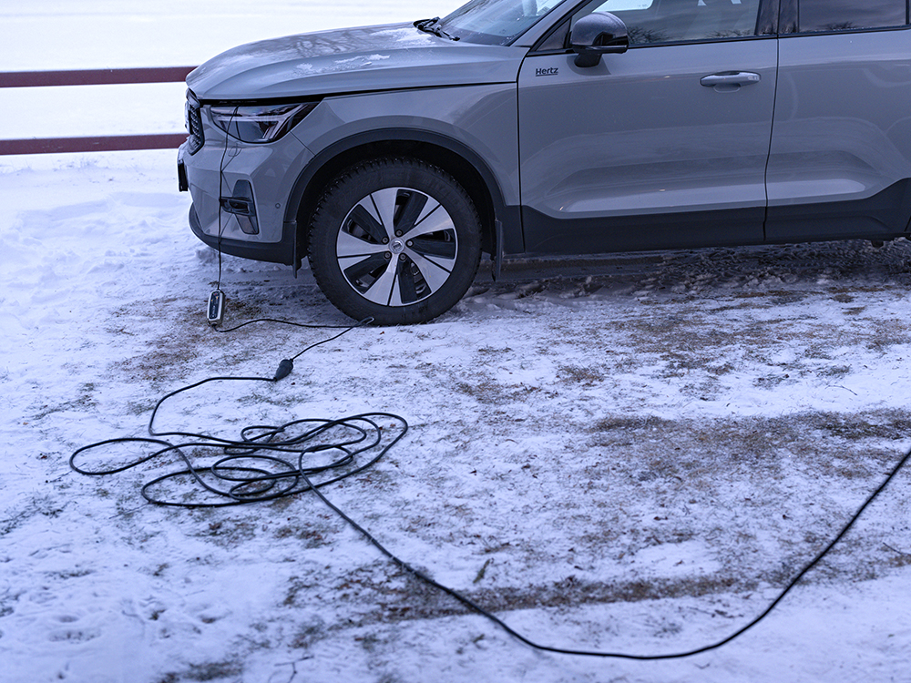 Wir hatten so etwas ähnliches damals schon in Finnland gehabt. Aufgrund der großen Kälte wollte das Auto nicht mehr anspringen. Damals war aber die Batterie richtig hinüber und es hatte uns niemand erzählt, dass man das Auto vor dem Starten aufwärmen konnte. Da man ja aus Erfahrungen klüger werden sollte, fragte ich am Vermietungsschalter genau nach dieser Funktion und wurde mit den Worten, das ist doch ein Volvo, da passiert das nicht, abgefrühstückt. In Finnland, wie auch jetzt, war es ein Volvo. Immerhin hat Sune mir dann ein Ladegerät gebracht und wir haben die Batterie, im Auto verbleibend, über Nacht daran angeschlossen.