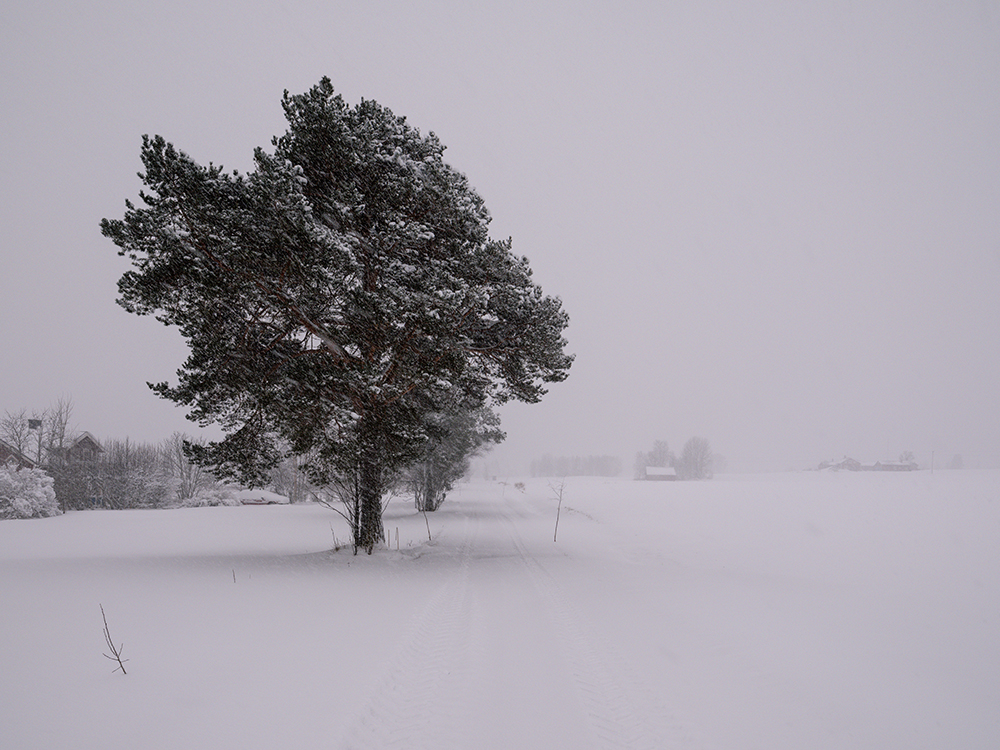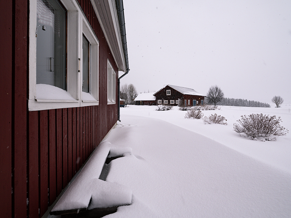 In Offne schneite es, wie angekündigt, die ganze Nacht durch und wurde zum Vormittag noch heftiger. Den ersten Schneeflug hatte ich früh 4:00 Uhr beim Gang auf die Toilette gesehen. Die Hauptwege waren also frei. Für die privaten Ausfahrten ist dann jeder selber zuständig. Sune hatte mir am Vortag erzählt, dass sein 3 Jahre alter Traktor nicht anspringt. Bei der Masse an Schnee und Weg war dieser aber maßgeblich für die Beräumung des Weges. Wie das auf dem Land aber so ist, kennt man sich und hilft man sich, so dass kurz nach 10:00 Uhr ein Traktor angedüst kam, 2 Mal über das Grundstück wirbelte und wieder davonfuhr.